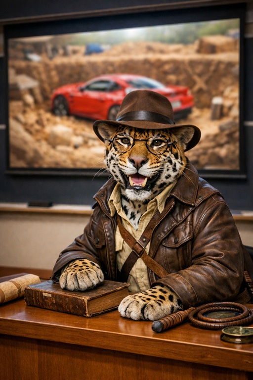 Dr. Jaguarius war, wie sein Name andeutet, ein Jaguar. Ein ziemlich großer sogar. Mit kräftigen Pfoten, goldgelbem Fell und dunklen Rosetten. In der archäologischen Fachwelt sorgte das gelegentlich für Verwirrung, besonders bei neuen Praktikanten.